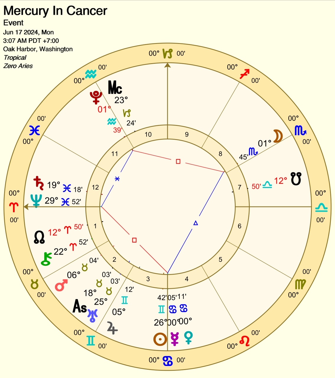 When Mercury moves through watery Cancer, logical arguments give way to emotional appeals. Conversations become deeper and dives into feelings and memories with a focus on building emotional connections. This can be a powerful time for creative writing, as it unlocks a wellspring of personal narratives and fosters empathy in communication.